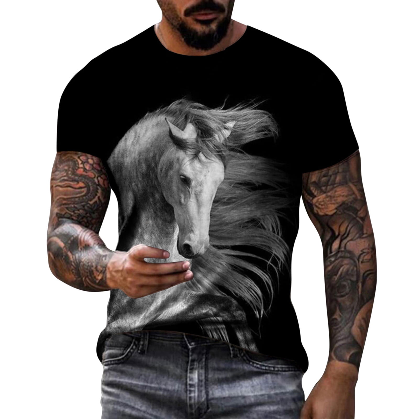 Tops For Men Horse Retro 3d Printed Crew Neck Short Sleeved Men S Spring And Autumn T Shirt Plus Size Tops For Men Mens V Neck T Shirts Shirts For Men Clearance Gray 2xl